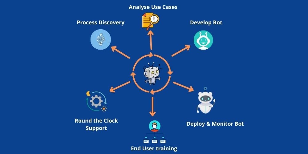 We have helped enterprises in all stages of RPA development cycle like identifying the right use cases, defining their scope, developing, deploying & monitoring the bots